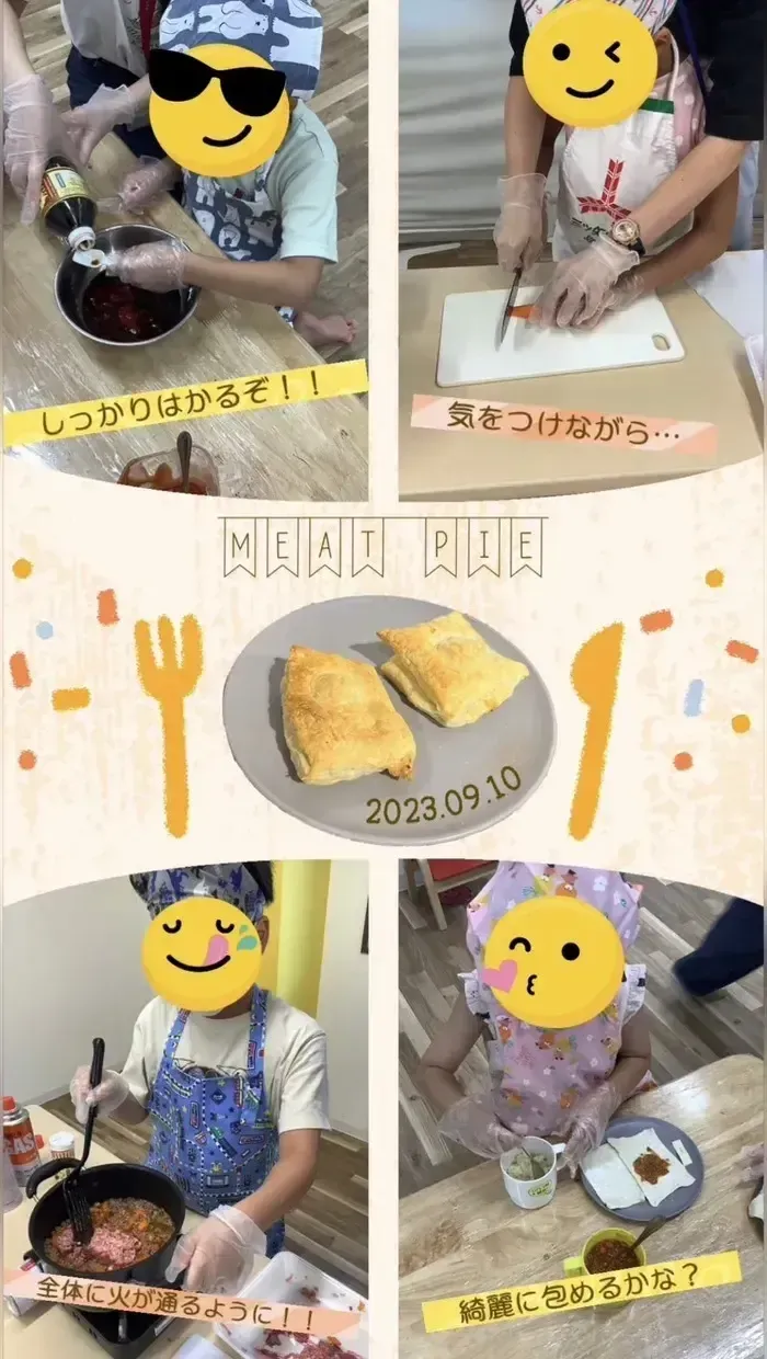 今回は、おやつのクッキングイベントとして、ミートパイを作りました🤤