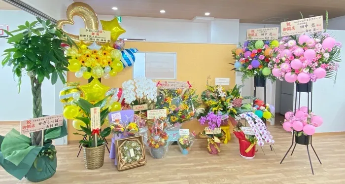 また、関連事業所様からたくさんのお祝いのお花やプレゼントもいただき、職員一同、身が引き締まる思いと共に大きな励みとなりました🌸