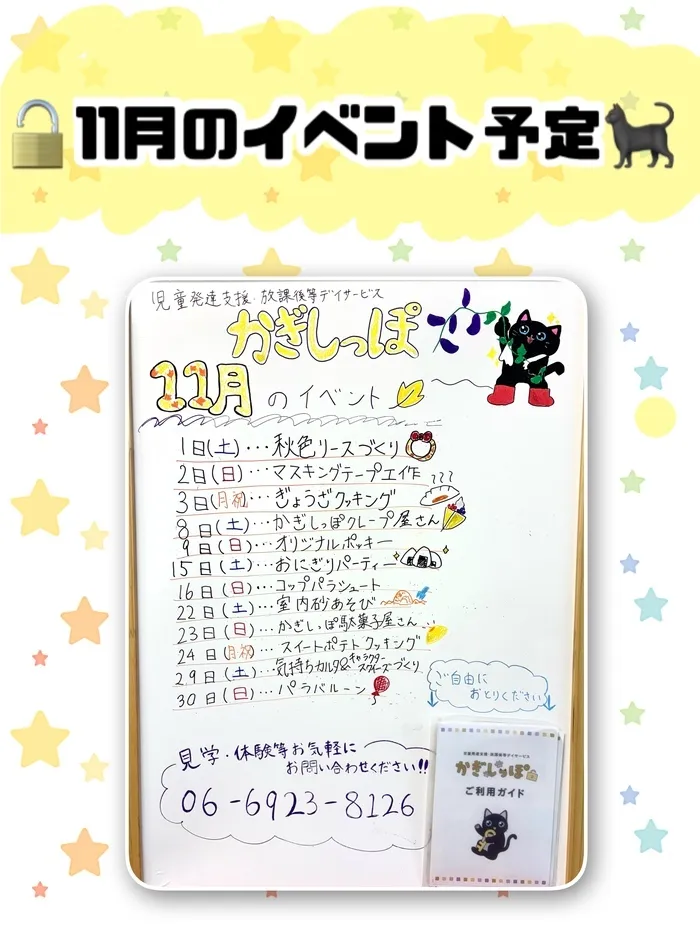 秋にちなんだものからみんな大好きクッキングまで、楽しいイベントが盛り沢山です!