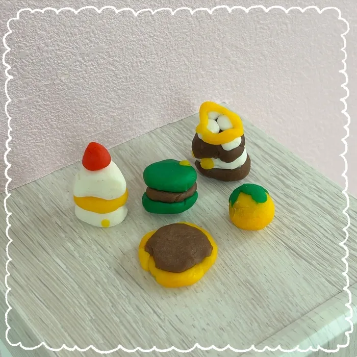 「パンケーキ作ろう!」「次はマカロン!」と作っていくうちにどんどんアイデアが浮かび、スイーツやフルーツなど様々なものを作っていました❣️