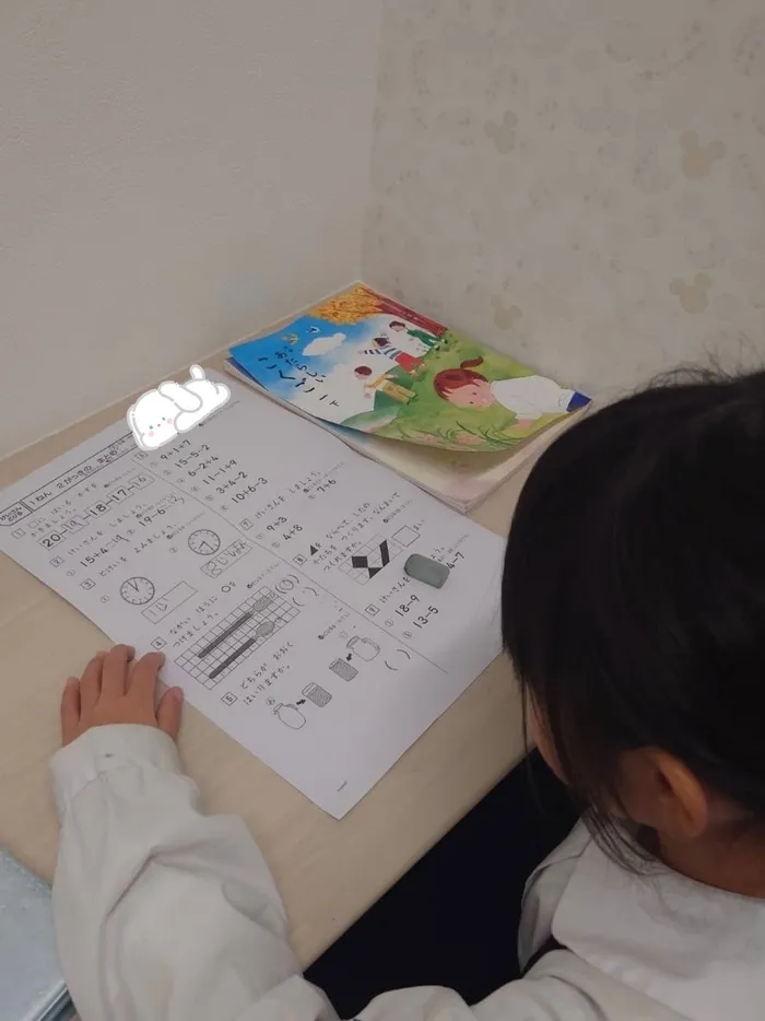 小学生のお友だちは、個室の学習スペースに行き、国語プリント、算数プリント、音読の宿題に取り組んでいました✨