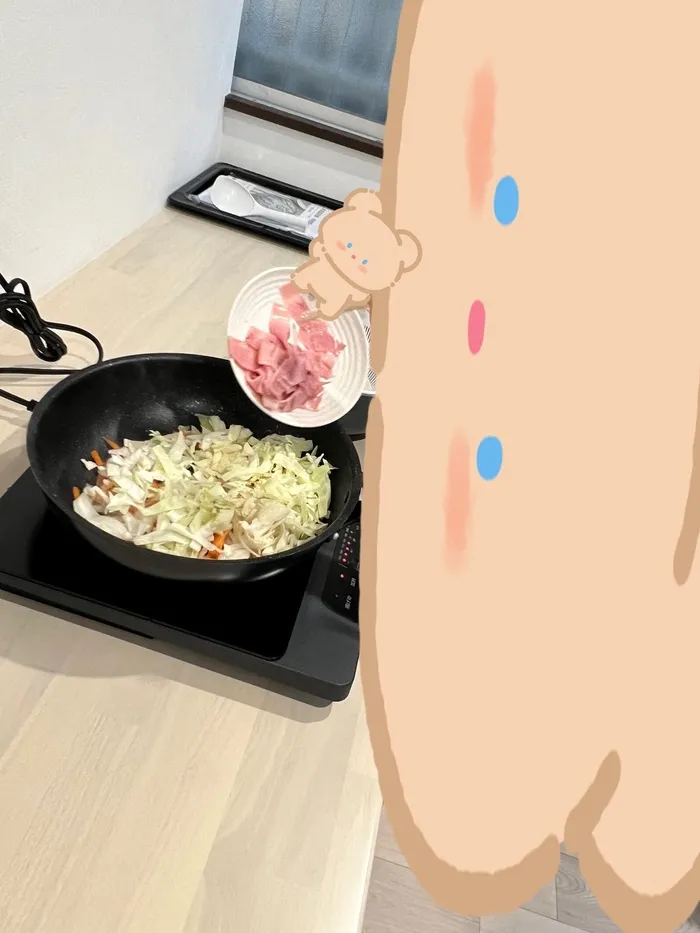 「人生初の焼うどん」とのことでしたが、持参したお昼ご飯ではなく「うどんを食べる!」と言ってくれました😍