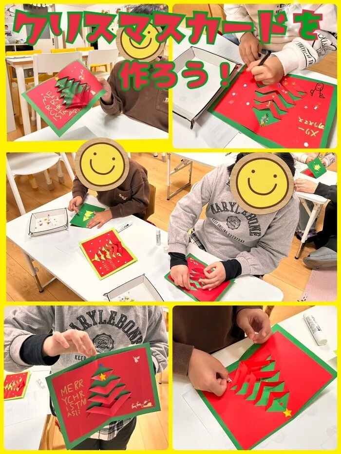 本日の工作レクレーションでは、立体のクリスマスカードを作りました。