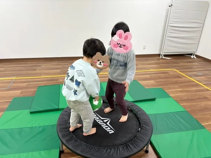 トランポリンはエネルギー発散にもなり、体幹づくりにも最適な活動です。