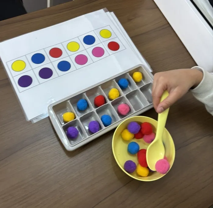 スプーンの練習をしながら、「色の理解」やどこに入れるという「場所の理解」を鍛えています🥄