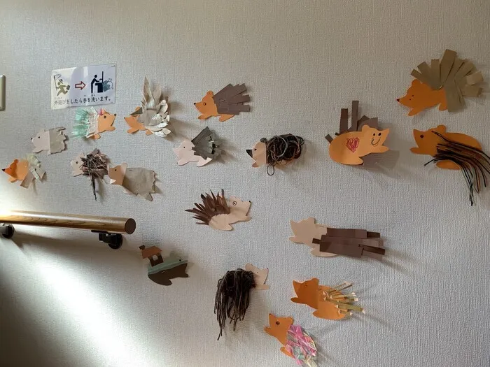 画用紙を切ってトゲトゲを表現したり、毛糸やお花紙を貼りつけて、ふわふわトゲトゲのかわいい作品が完成🧶✂️