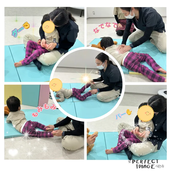 手の指をグー✊パー✋したり、身体をさすってほぐしてもらいました。