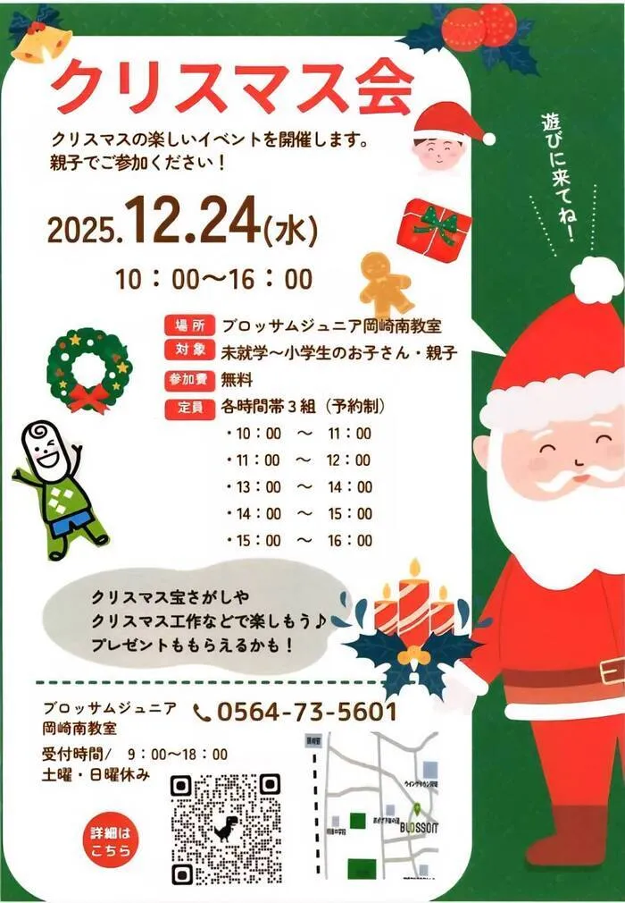 2025年12月24日(水)に岡崎南教室でクリスマス会イベントを開催します🎅🏻🎄