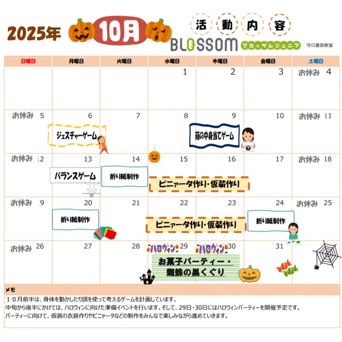 中旬から後半にかけては、ハロウィンに向けた準備イベントを行います👻