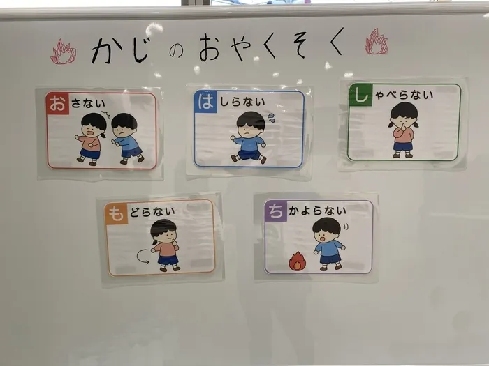 「お・は・し・も・ち」(押さない・走らない・しゃべらない・戻らない・近づかない)のお話もしっかり学び、実際に避難経路を歩きながら、どこから外に出るのか、どこに集合するのかを確かめました。