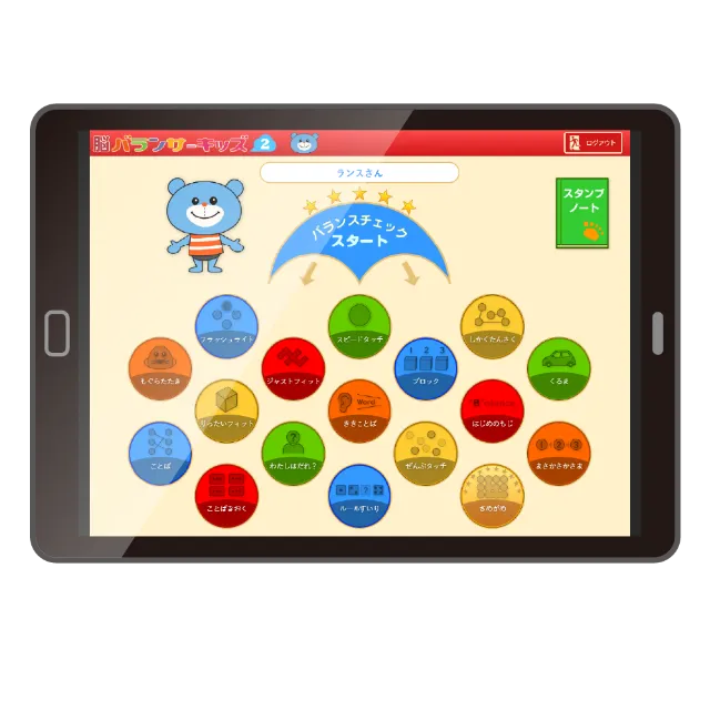 脳バランサーキッズは、楽しいゲーム形式の13種類のタスクを通して、子どもたちの発達特性を「注意力」「言語力」「空間認識力」の3つの観点で評価できるツールです💻