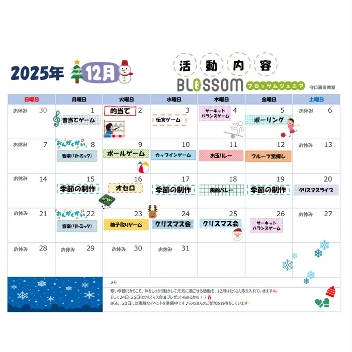 寒い季節だからこそ、体をしっかり動かして元気に過ごせる活動を、12月はたくさん取り入れていきます💪
