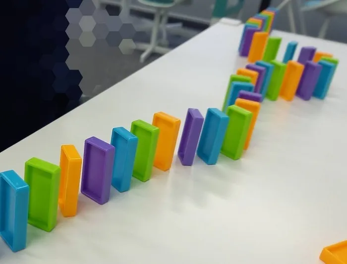 こんにちは!コプラス東大前教室です🙌今回ご紹介するのは「ドミノ」です。一つ一つ慎重に並べていくドミノ。指先を使ってドミノを器用に動かすことで微細運動になります。