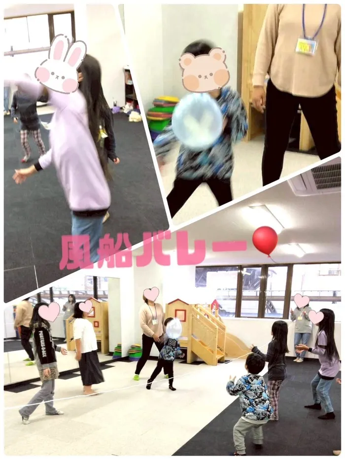 ☆運動能力の向上に加え、 風船を持ったり押したりすることで、さまざまな感触を味わい、みんなで話し合い意見を出し合うことで、コミュニケーションの促進にもつながる、一石三鳥の楽しい活動になりました☆