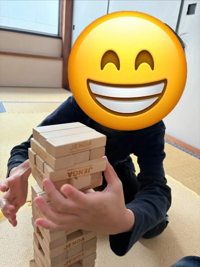 今週はお子さんたちと一緒にジェンガ遊びを行いました。