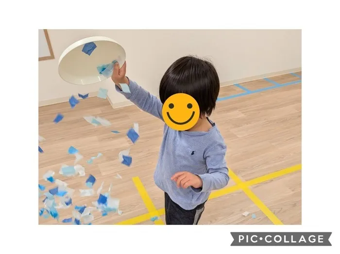 お皿や布を使ってかみふぶきを集めて散らしたりして、とっても楽しんでくれましたよ😊
