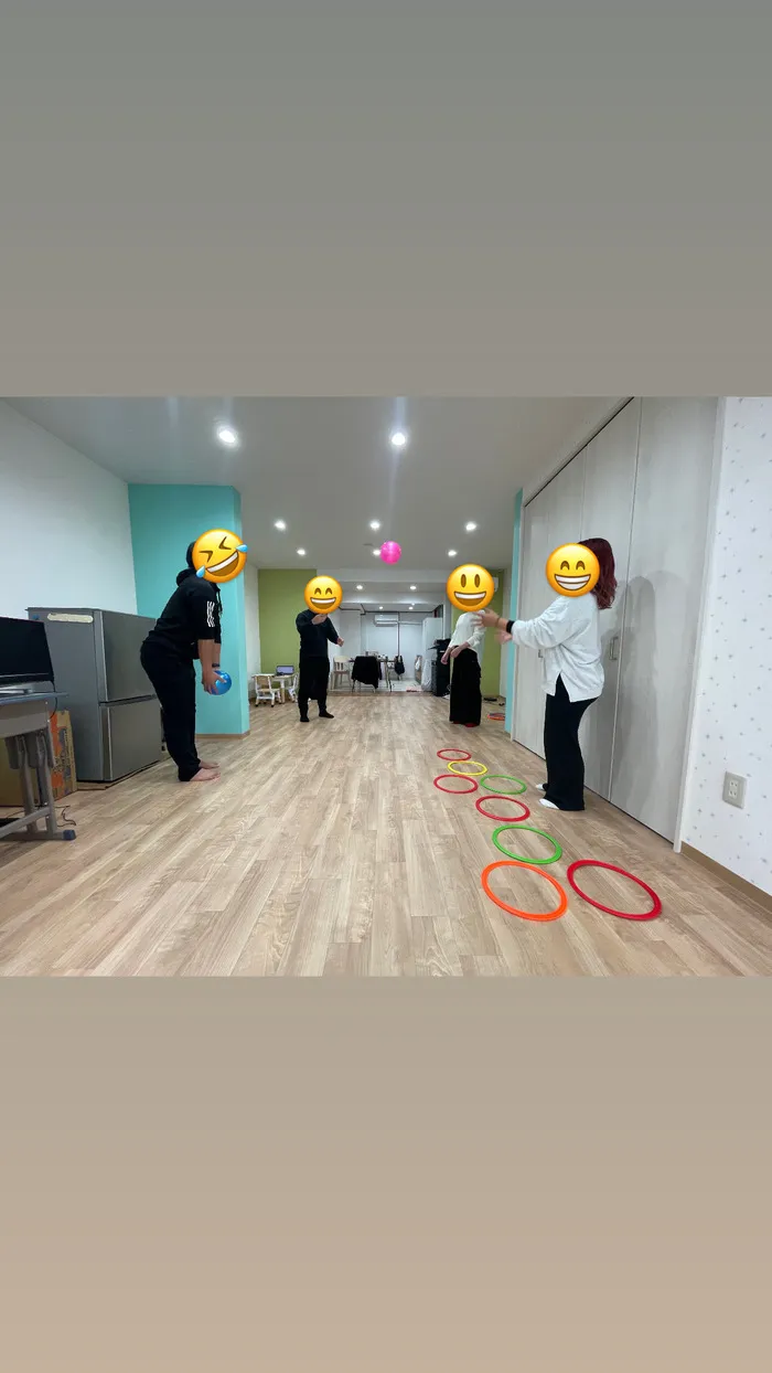 先日スタッフ一同でお子様達におこなってもらう運動プログラムの練習をしてみました❗️