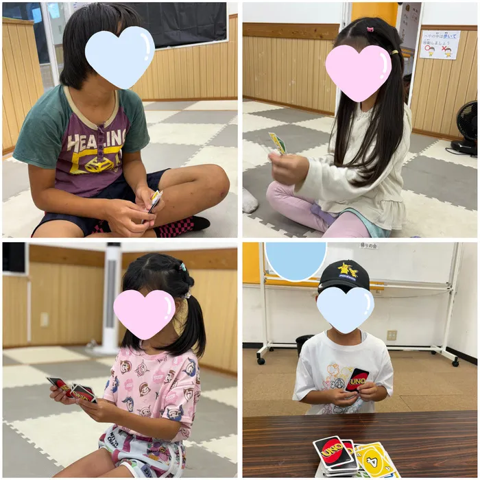 今回の『UNO』は職員も一緒に行いました。何回戦か行いましたが、子どもたちが勝負強くてほとんど職員は負けてしまいました😭