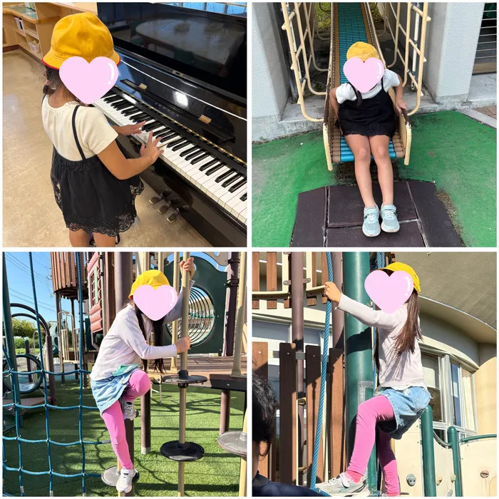 子どもたちは、室内にあるピアノを弾いたり、屋外にある遊具で遊んでいました!