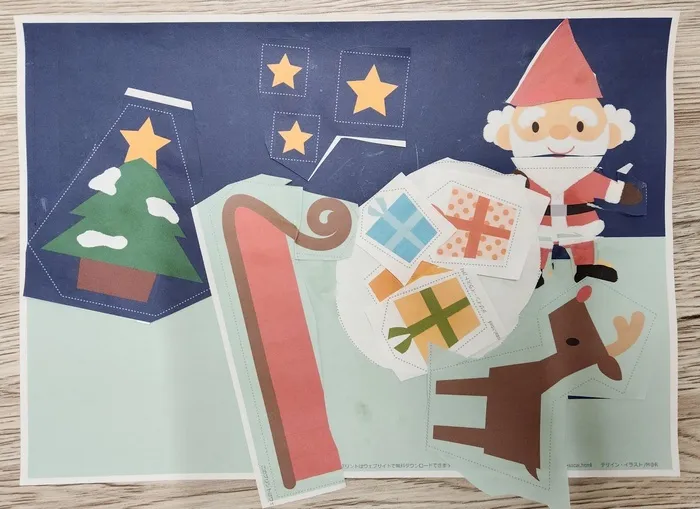 ということで今回のセラピーでは 「切って貼って♪サンタクロース」 を一緒に作りました。