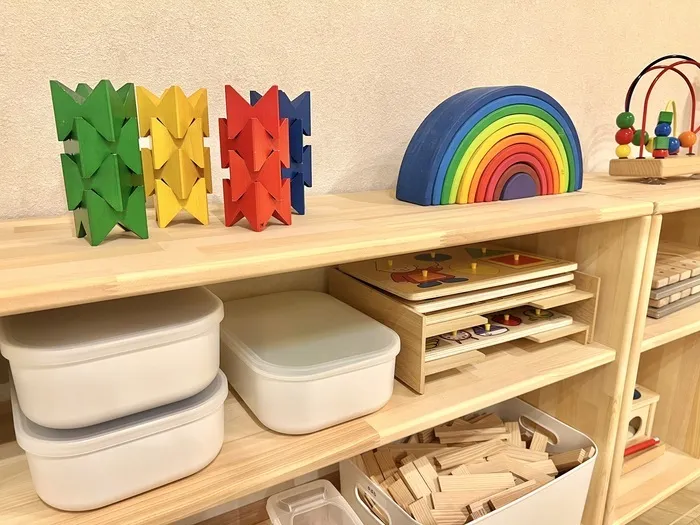 一人ひとりの発達段階に合わせて選べる木のおもちゃを豊富にそろえています。