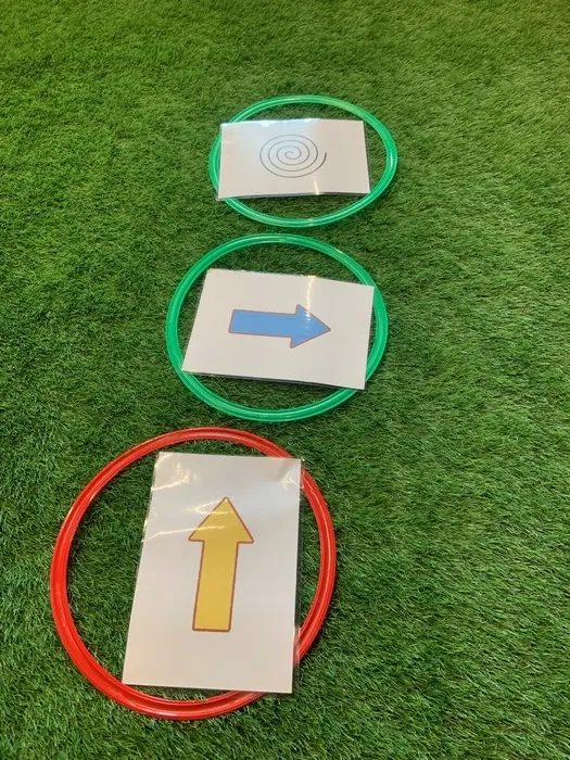 フープの中に矢印を見ると、「矢印通りに進む」という遊び方ももちろんですが、