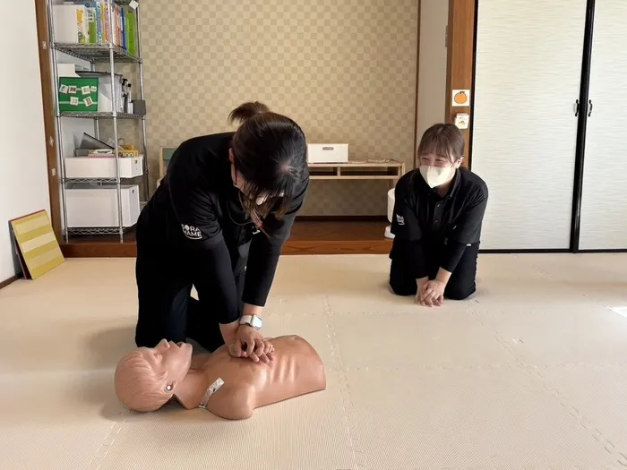 心肺蘇生法(CPR)やAEDの使い方等、いざという時に落ち着いて行動できるよう、実際に体を動かしながら学びました!💡