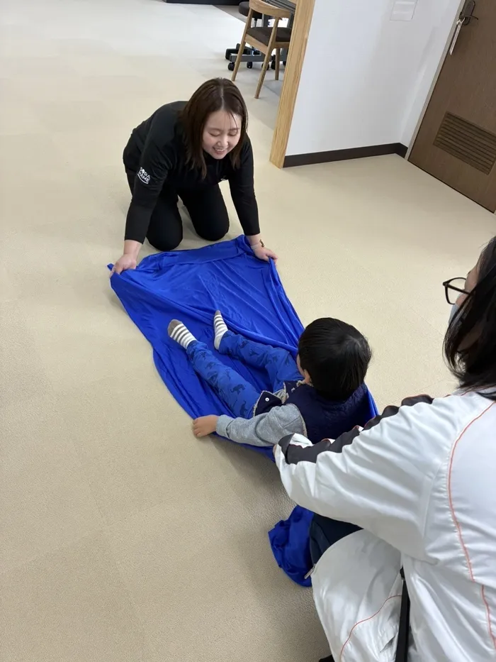 お母さまと一緒に ゆらゆら~とシーツブランコを楽しみました!(^^)!