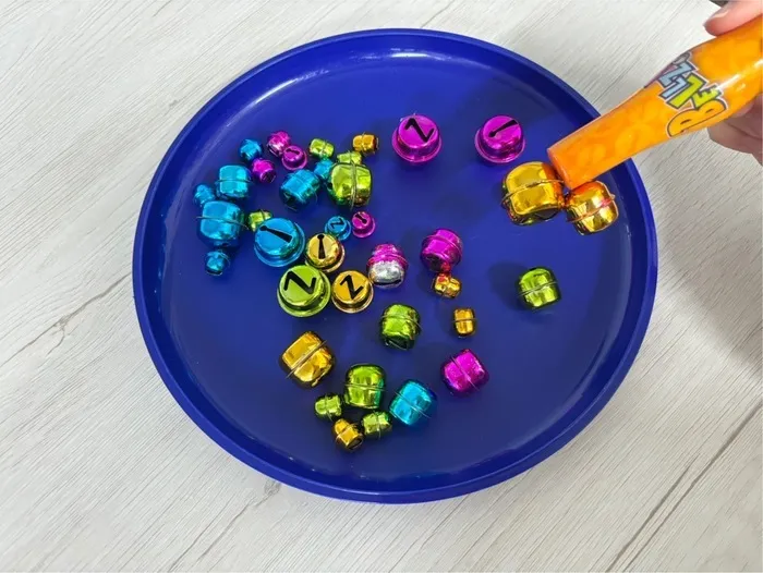 順番に磁石を近づけて鈴をとっていきますが、ここが!ベルズのおもしろいところです!