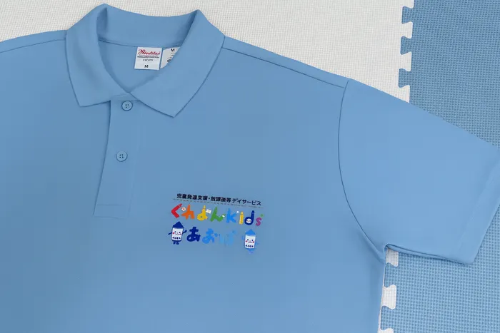 テーマカラーの水色がさわやかで可愛らしいポロシャツです🫧