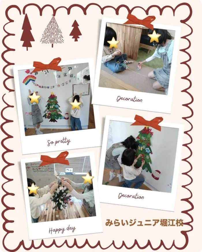 みらいジュニアでは、みんなでクリスマスの飾り付けを行いました。