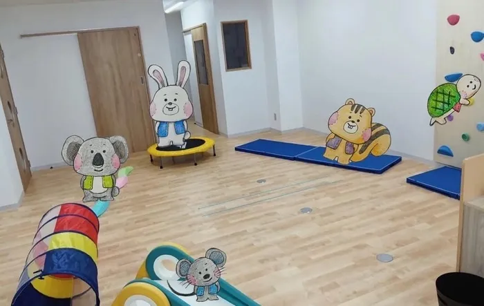 サーキット遊びは、ボルダリング登りやマットの上ででんぐり返しをしたり、トランポリン、平均台、トンネルくぐりに滑り台!盛りだくさんの運動遊びで子どもたちにも大人気です!