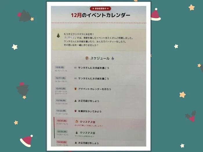 本日は、【12月イベントカレンダー】のご紹介です♪