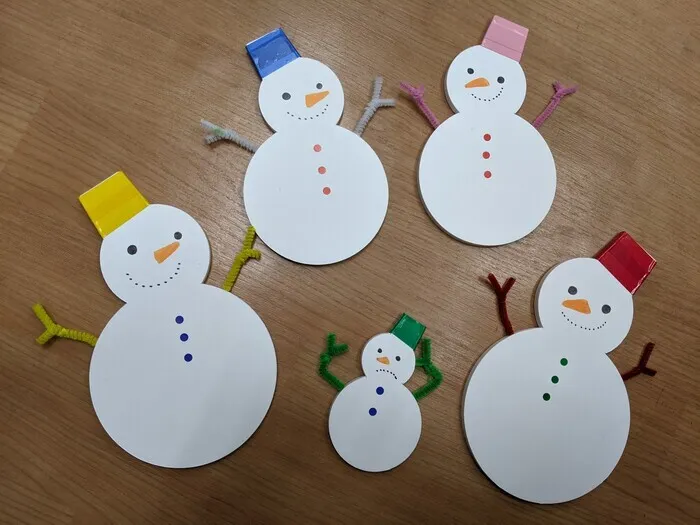カラフルな帽子をかぶったゆきだるまさんたちが