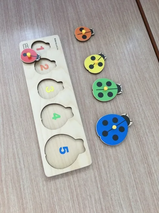 てんとう虫の点の数と、数字をマッチングする要素もあります。