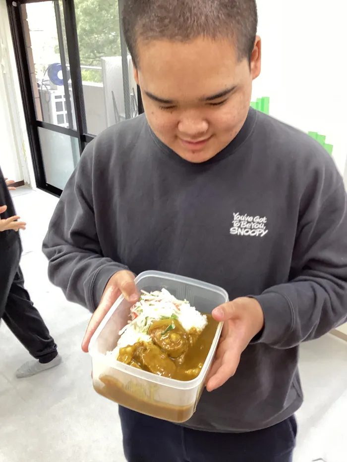 今回はお昼ごはんにハンバーグカレーとキッズわん農園で収穫した大根を使用した大根サラダを用意しました♪