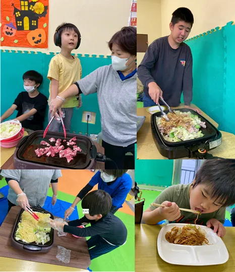 本日のライズのお友だちはお昼に焼きそば作りを行いました。
