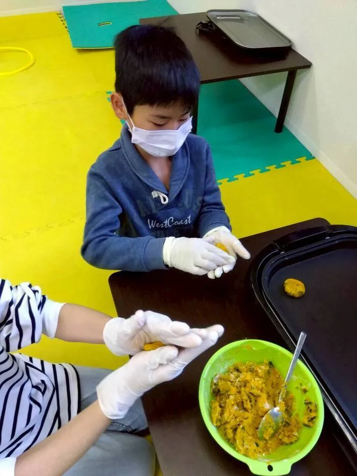 本日はおやつレクで【かぼちゃ団子】を作りました!