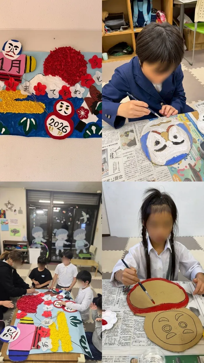 凧揚げや馬、松などは絵の具で色を塗りました🎨